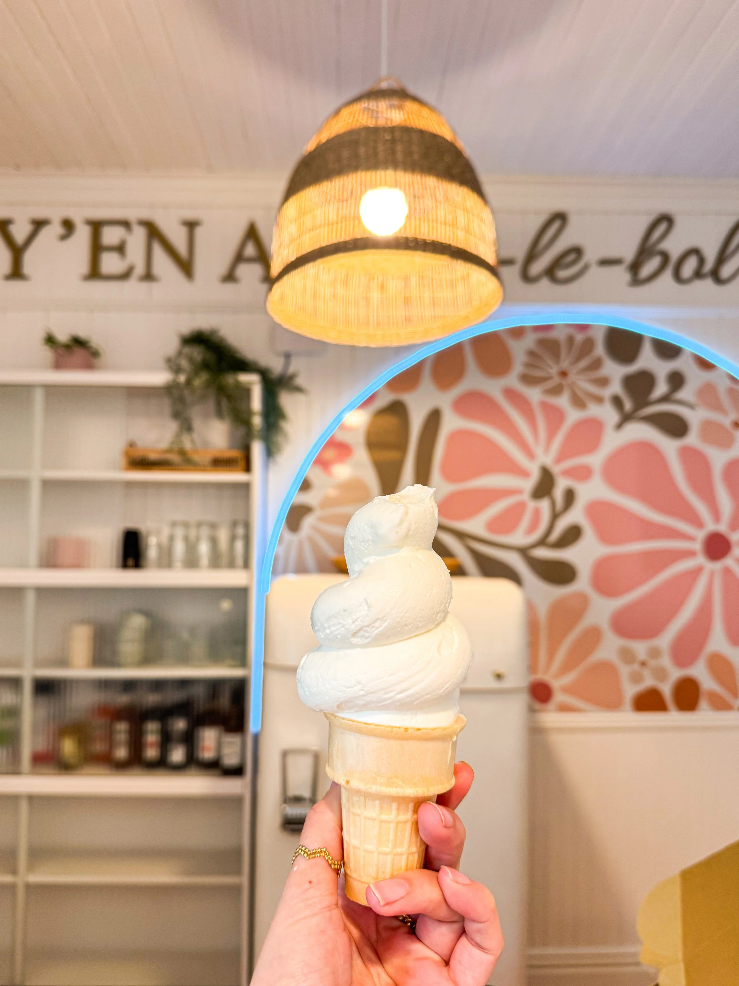 Elle adore les produits locaux, mettre de l’avant les saveurs d’ici et surtout, épater la galerie! Vos invités seront charmés par notre Café Crèmerie Luncherie située dans l’ancien Presbytère de Pont-Rouge. Au menu, des coupes glacées gourmandes avec confiture de vrais fruits maison, slushs au vrais fruits, trempages à crème molle mais aussi, le meilleur café latté glacé ou matcha fruits de la passion.